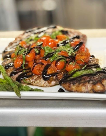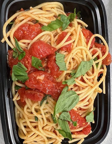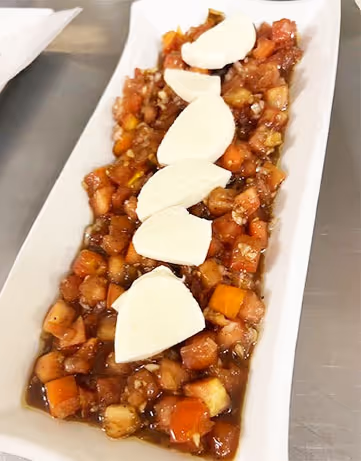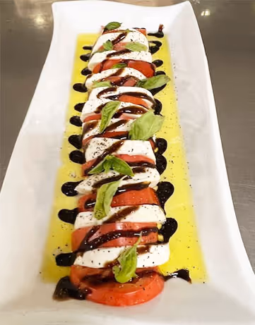 Each entrée comes with a side salad with tomatoes, cucumbers, and mozzarella cheese along with garlic or Italian bread.