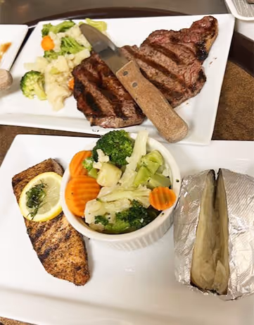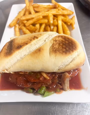 Choice of french fries or baked potato. Loaded baked potato add 1.25.